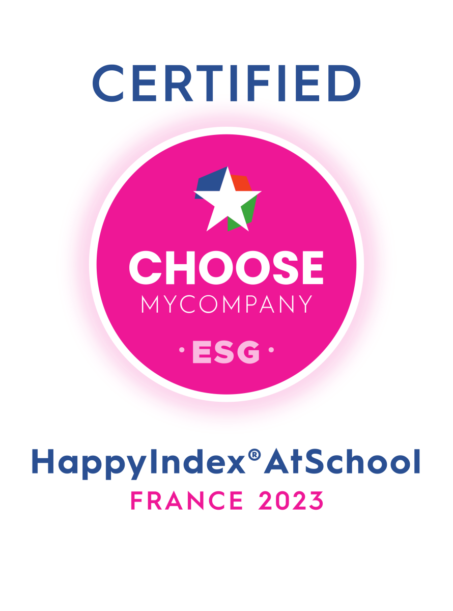 ![]() | 2023 : Accréditation ChooseMyCompany 2023 dans la catégorie HappyIndex®AtSchool ! Simple, authentique et transparent, le label HappyIndex®AtSchool repose exclusivement sur les avis certifiés ESG ✅ de nos étudiants. |