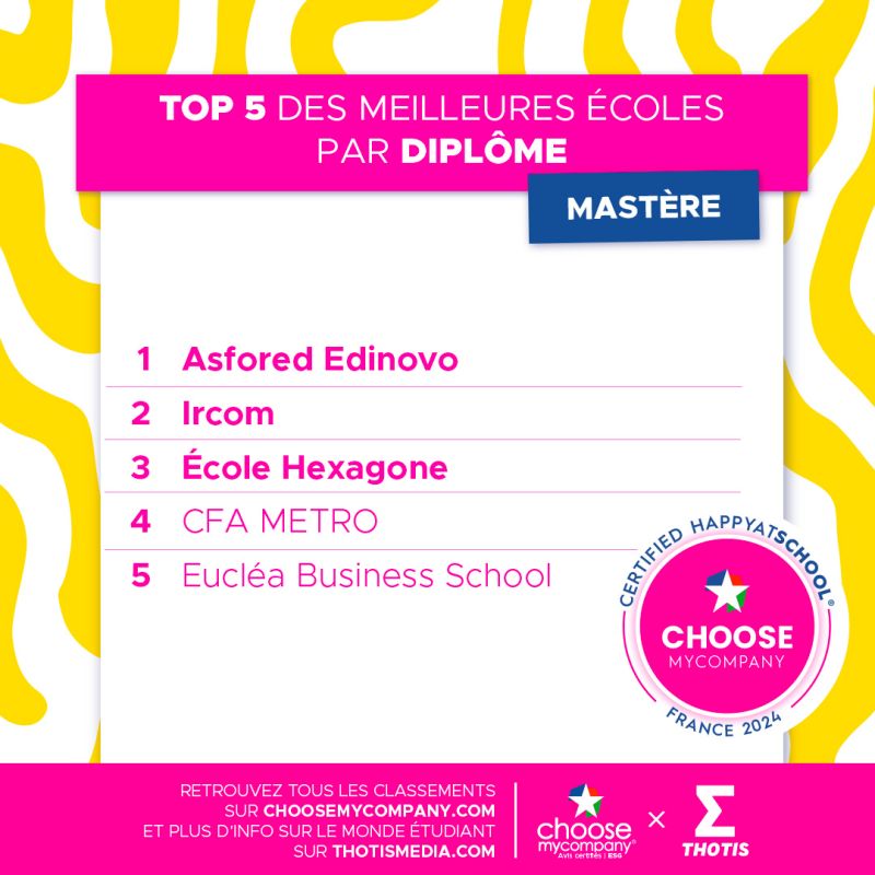 ![]() | 2025 : Accréditation ChooseMyCompany 2025 en 1ère place dans la catégorie "Top 5 des meilleures écoles" pour les Mastères HappyIndex®AtSchool ! Simple, authentique et transparent, le label HappyIndex®AtSchool repose exclusivement sur les avis certifiés ESG ✅ de nos étudiants. |